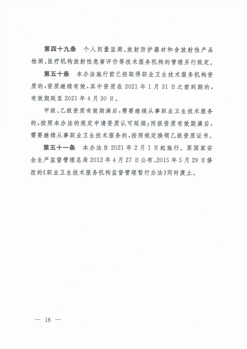 職業(yè)衛(wèi)生技術(shù)服務(wù)機(jī)構(gòu)管理辦法(國家衛(wèi)生健康委令第4號(hào))